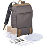 Profitez du grand air avec style grâce au sac à dos de pique-nique Café 11 pièces pour deux. Le compartiment principal est doté d’une large ouverture pour accéder facilement aux articles de pique-nique. Le compartiment isotherme séparé en PEVA peut accueillir 6 canettes. L’ensemble comprend 2 assiettes de 20 cm, 2 tasses, 2 fourchettes, 2 cuillères et 2 serviettes. Idéal pour les fêtes d’avant-match, une sortie au parc et bien plus encore ! La couverture de pique-nique (1070-15) est un excellent complément.
