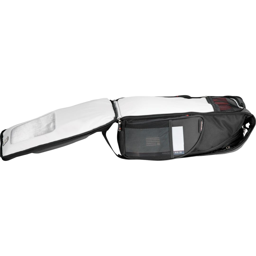 Ce modèle exclusif est doté d’un compartiment réservé à l’ordinateur portable qui se déplie pour être posé à plat sur le tapis anti-rayons X afin d’optimiser votre rapidité, votre confort et votre sécurité. Le compartiment latéral pour ordinateur portable peut accueillir un ordinateur jusqu’à 17 pouces. Le compartiment principal spacieux à fermeture éclair comprend plusieurs poches fendues, une poche rembourrée dédiée pour iPad, ainsi qu’un étui et un support Techtrap amovibles pour iPad. Poche zippée doublée en Nylex. Poche média zippée supplémentaire avec port pour écouteurs. Poche avant zippée avec organisation de luxe et porte-clés. Poches dissimulées pour objets de valeur et poche facile d’accès pour billets. Grande poche latérale zippée avec fenêtre d’identification intégrée. Poche latérale isolée en PEVA avec poche extérieure en filet. Décapsuleur/porte-clés sur la sangle. Poignée style empiècement. Dos rembourré et bretelles de compression pour plus de confort. Panneau arrière conçu pour se glisser sur les poignées des trolleys. Doublure et accessoires Elleven™. Frais de tirage offerts pour les broderies jusqu’à 10 000 points.
